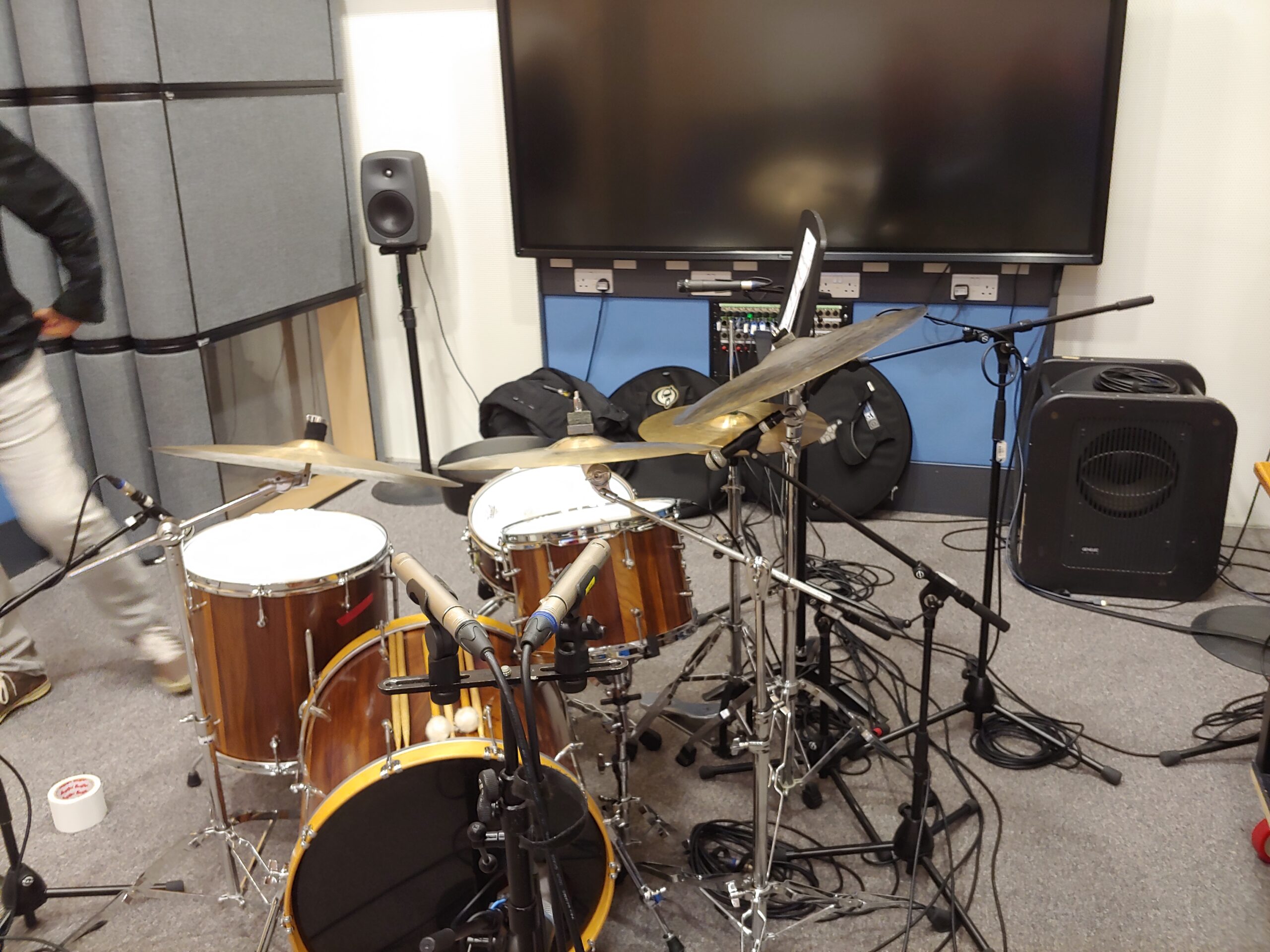 So my group recorded the session drummer along to a jazz recording. We had a lot of microphones setup around the drum kit. My group and other groups complained about him being “bad tempered”. But I’m convinced this was deliberate on his part, and organised between him and the head of Music Antti, so that he would be this way if he was not treated properly and with the proper respect. This is because people skills and psychology is actually part of what we’re learning. You have to keep your musicians happy and relaxed otherwise you will not get the best performance out of them.